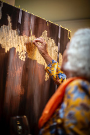 Der Star des Abends? Mein interaktives neues Kunstwerk der Serie HUMAN STRIPES mit dem Titel 'ZUGENEIGT'. Alle Gäste haben mitgewirkt und es gemeinsam vollendet, ein echtes Meisterwerk der Zusammenarbeit. Es war inspirierend zu sehen, wie jede/r seinen Teil beitrug indem sie/er etwas abzog.